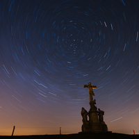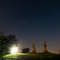 cvak na oblohu, sochu a stromky pořízený za úplňkové noci