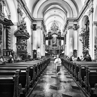 ...s tématem určitě pracovat lze...Ale v této podobě je to takové divné. Všechno se to tak všelijak kácí, oko se nemá kde zachytit. Asi bych jako "kotvu" použil tu sochu v popředí, a tu se pokusil srovnat. Po srovnání by se vidělo, co udělal ten zbytek okolo...Možná by šlo odříznout cca 50% toho prostoru dole. Ale až po srovnání, jestli by to bylo skutečně nutné...